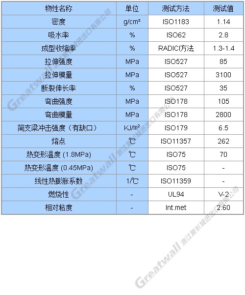 标准粘度,相对粘度2.60,具有自润滑性,快速成型性,适用于生产连接器,线圈骨架,电子电器,塑料扎带等